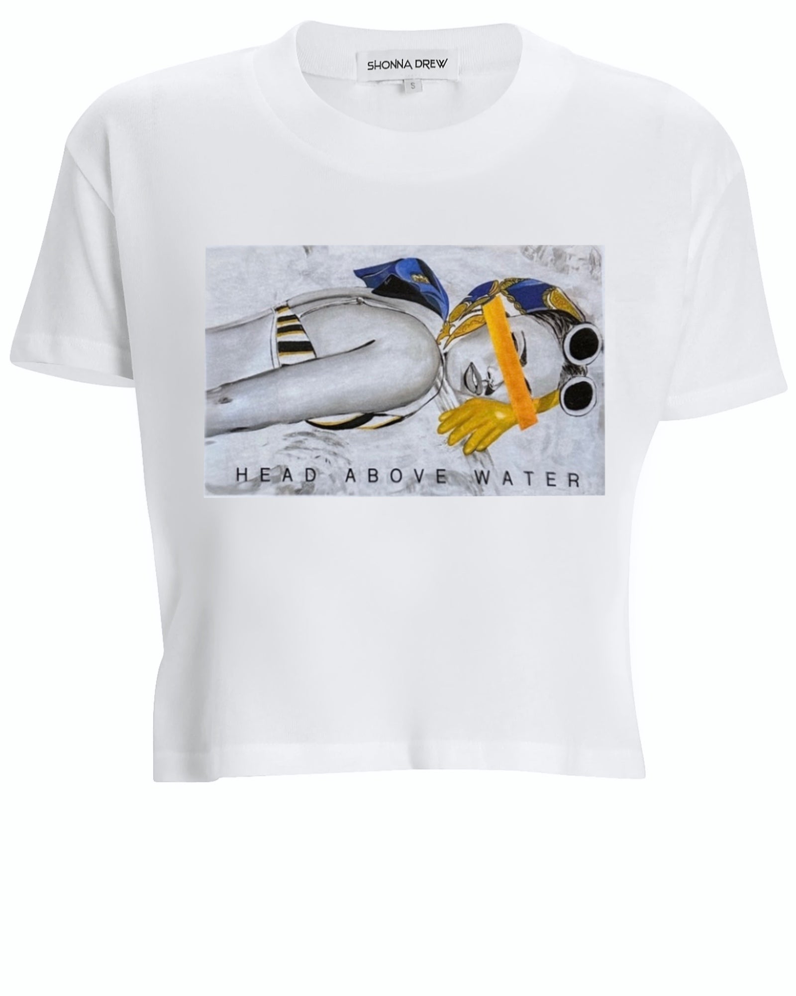 The design on this T-shirt is a direct image taken from the Shonna Drew painting titled, “Head Above Water.”