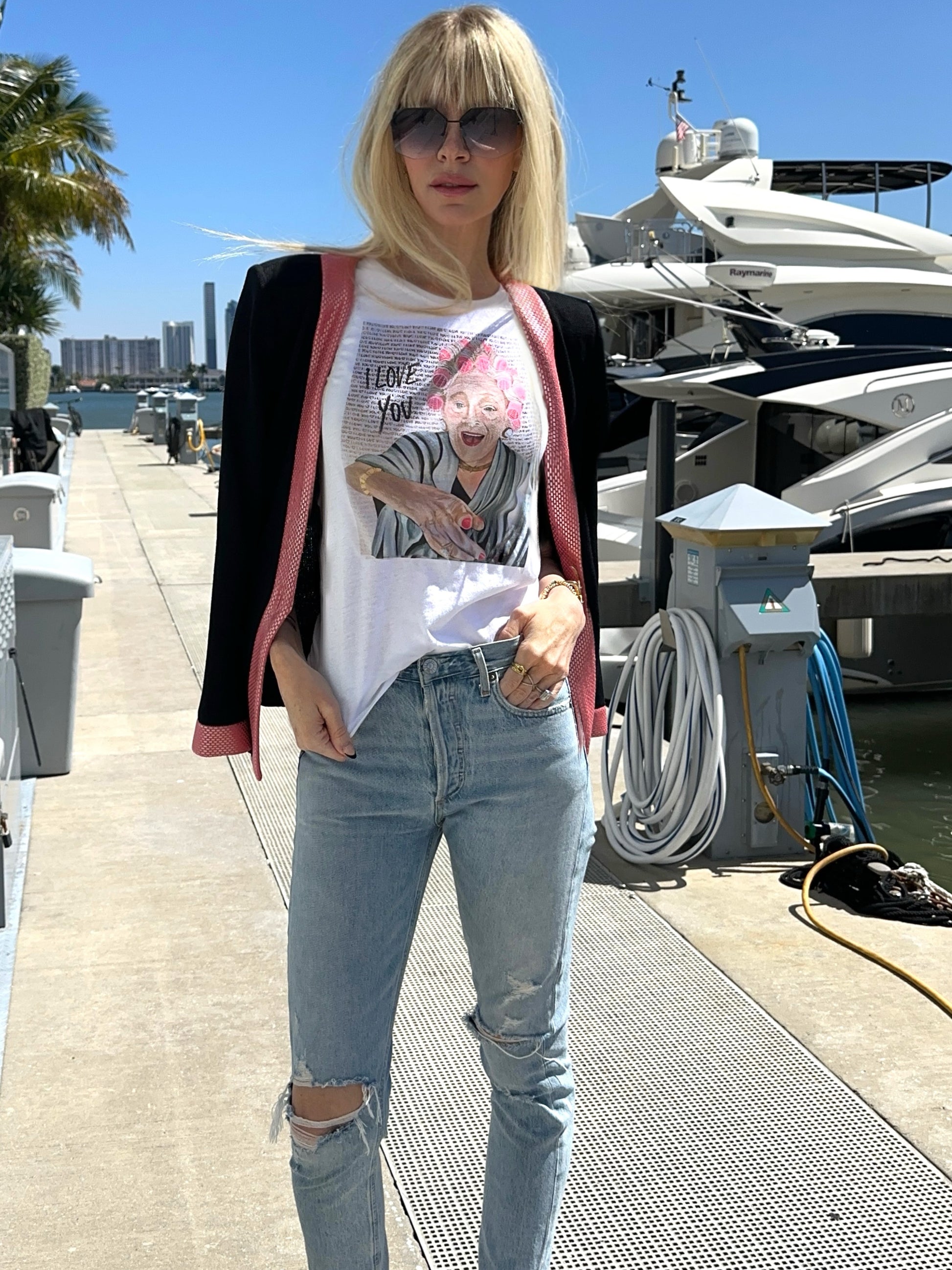 The “I Love You” Tee is a tribute to the incredible magic of my grandma Essie. She survived the Holocaust, but more than that... she lived life with so much love, laughter, and strength. I painted this piece to try and capture her essence. Despite all she endured, she always led with love, radiating happiness and kindness. She made sure everyone around her felt so deeply loved, and this T-shirt honors the very essence of Essie.